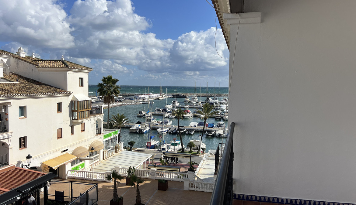 This recently renovated studio apartment is fabulously located in the heart of Puerto de la Duquesa. A stunning spot with a private balcony that has fabulous views over a lovely square and across to the sea. Just imagine sitting on your balcony, looking out at the marina, watching the world go by, and looking at the different boats coming into the harbour. A lovely place to dine al fresco and enjoy the warm Mediterranean evenings.
