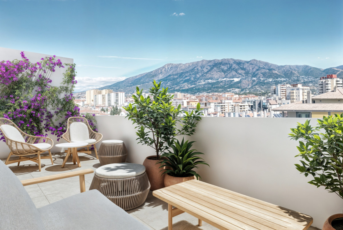 Discover our exclusive 2- and 3-bedroom penthouses in the heart of Fuengirola, just steps from the beach. Enjoy unbeatable views: choose between panoramic views of the Mediterranean Sea or the city center.