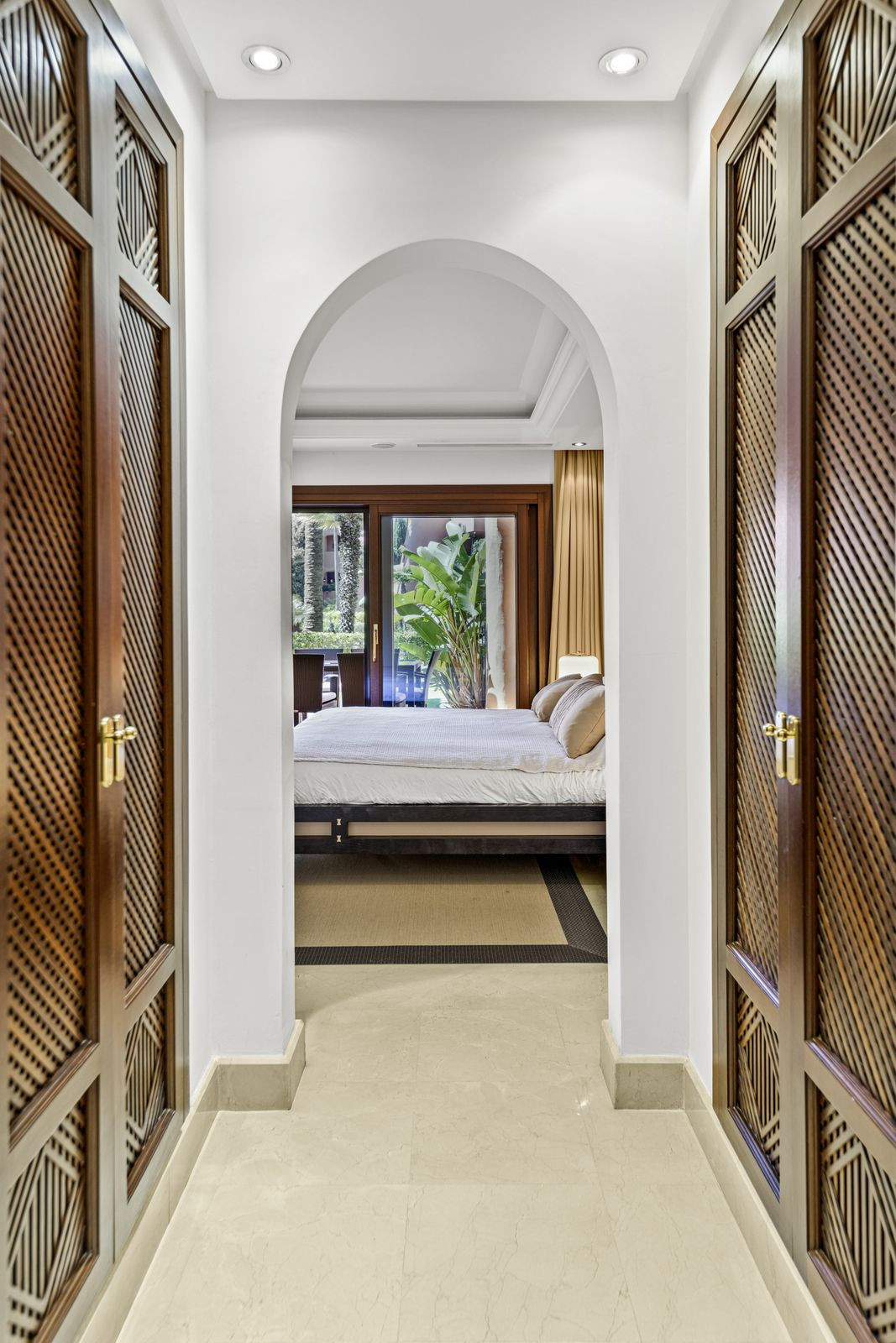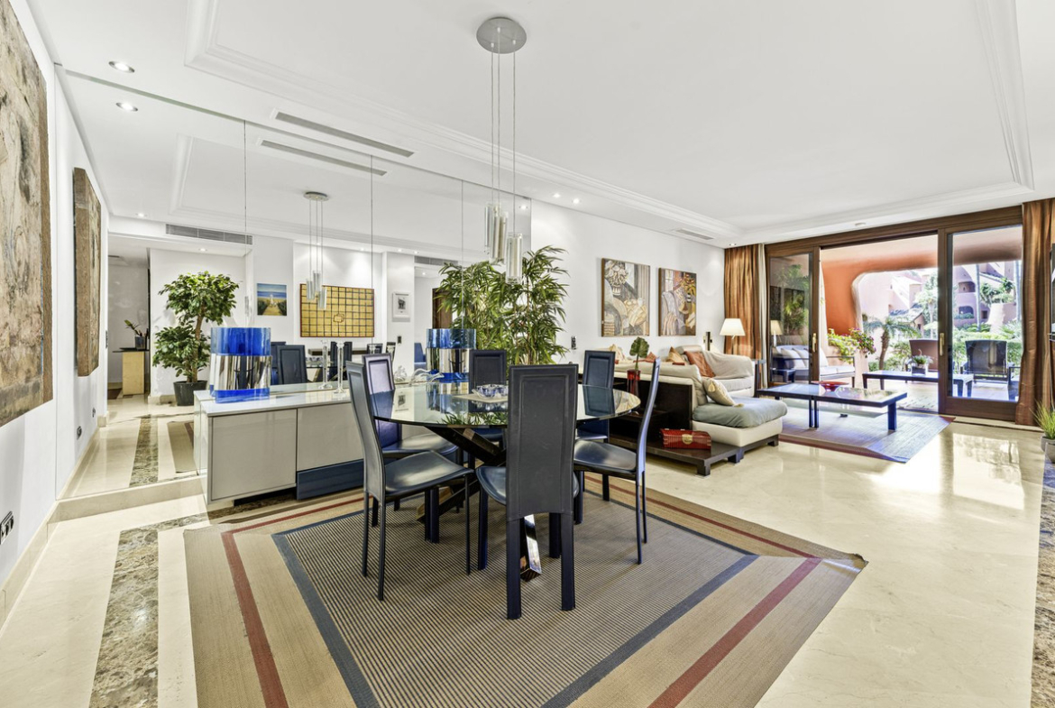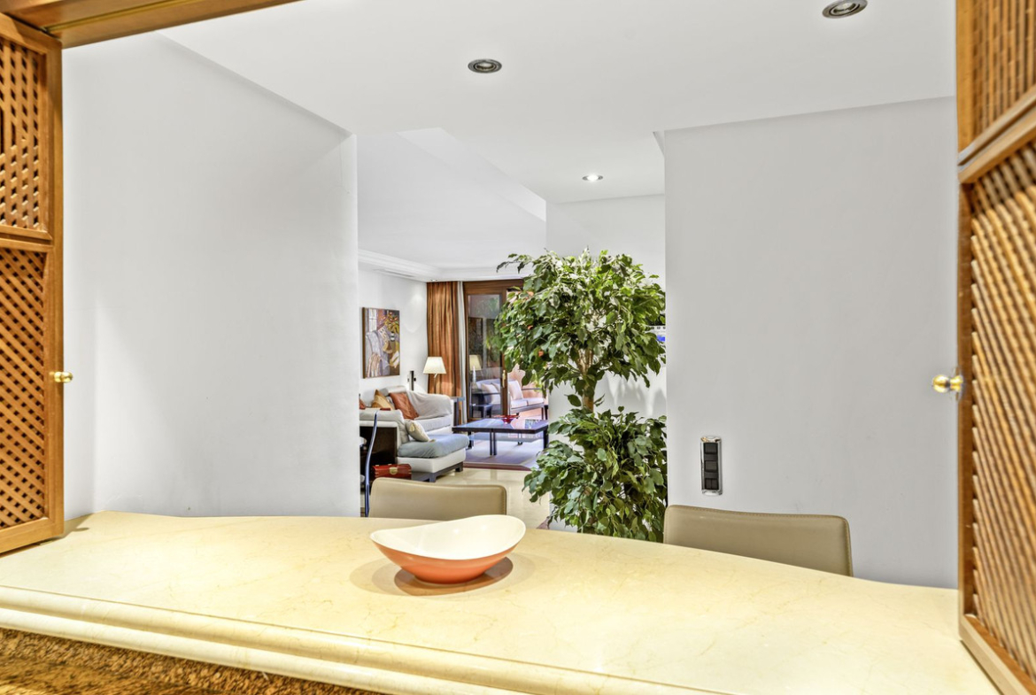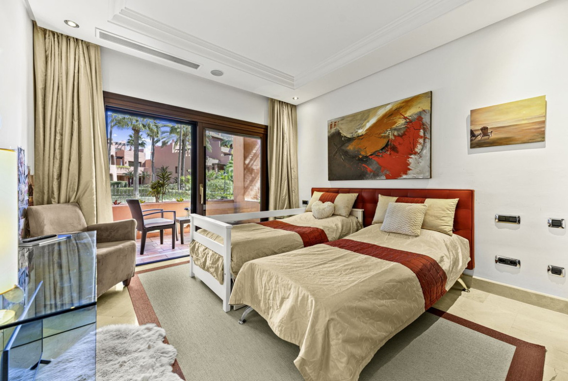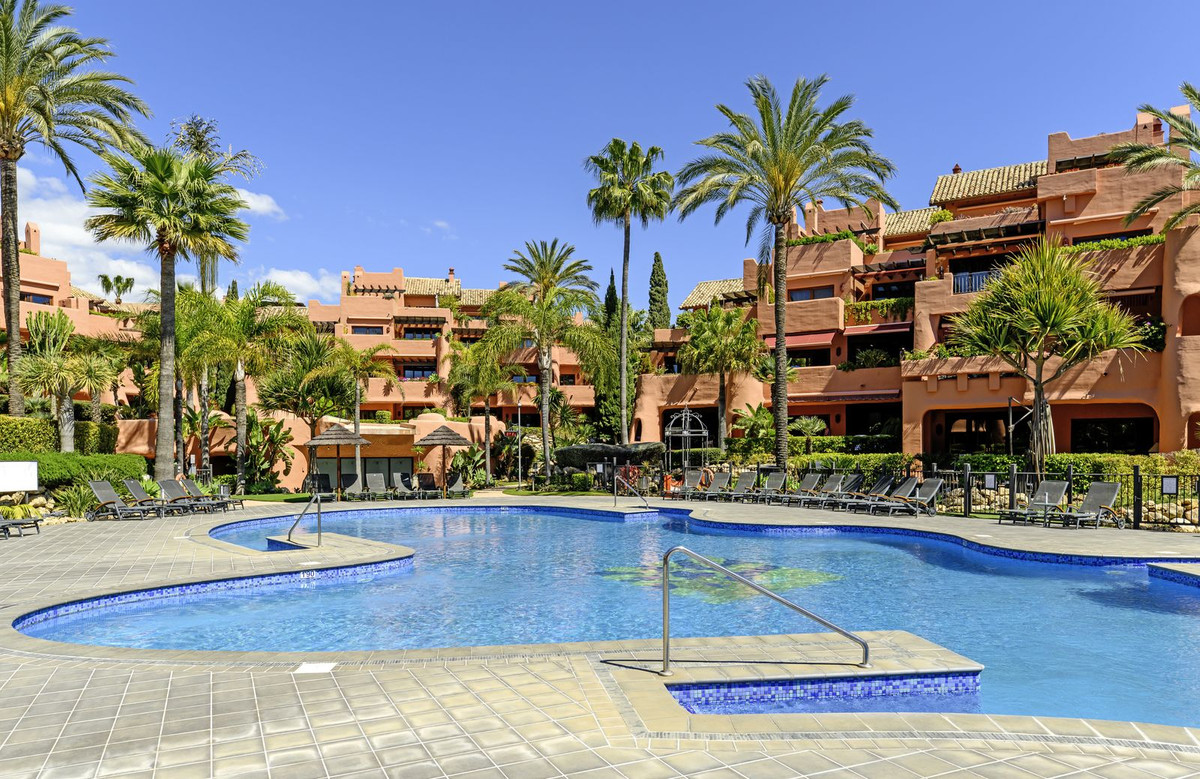 Welcome to one of the coasts most exclusive beachfront urbanisations with unparalleled security and location. This stunning 2 bedroom, 2 bathroom beachfront apartment boasts classic design and features throughout, with high quality of build and design. Welcoming you through the front door is a large hallway and following on, a fully equipped kitchen with top class appliances and a large separate utility room. As you continue through the property, laced with marble floors, you come to the open dining and living room, which heads straight onto the masterpiece of the property, which is the open terrace just steps away from the pool and south/south west facing!