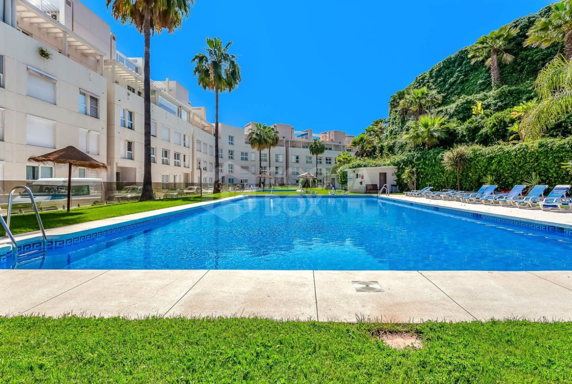 Located in La Corniche in the heart of Nueva Andalucia. This property has luxury qualities throughout and extensions with many improvements. It is set within an oasis of tranquillity yet just 5 minutes from Puerto Banús by car. This elevated two bedroom, ground floor apartment boasts spectacular views towards the sea, the La Concha mountain and surrounding golf courses.