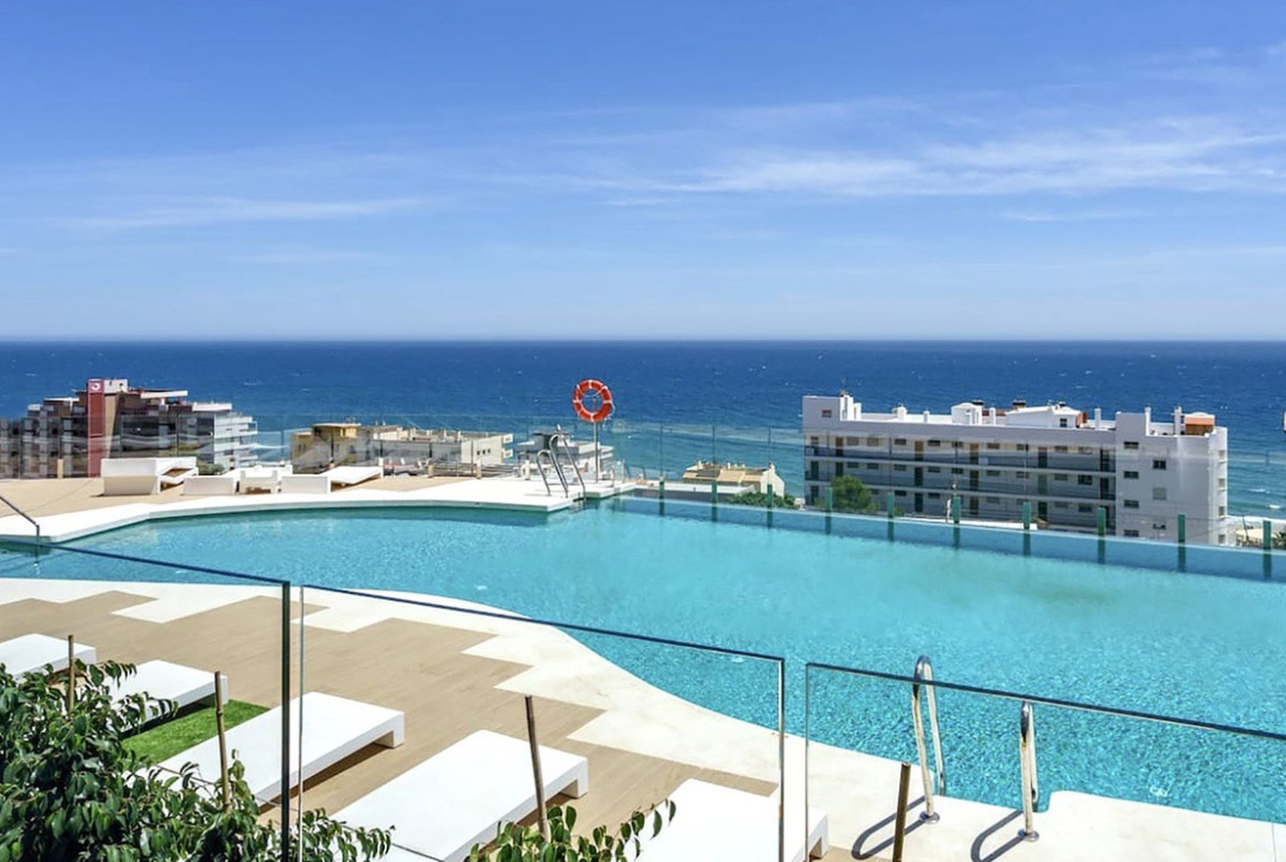 REDUCED – Stunning 2 bed duplex Penthouse only 100m to beach, shops & restaurants, with breathtaking 180º Mediterranean sea views. Set in exclusive El Higueron luxury Sports / Spa community with own beach Club.