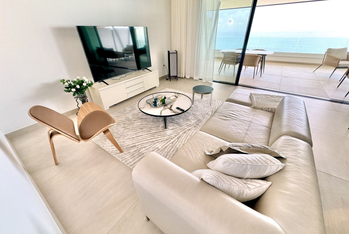 Breathtaking panoramic sea & coast views from its incredible south facing covered terrace & open sunny solarium including own sauna and plenty of space for sun beds, lounge set, dinning table, bbq area etc. etc. for luxury living & entertaining.