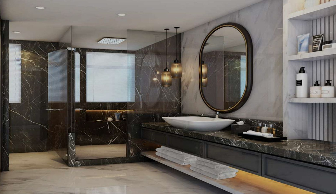 – Bathroom walls with COVERLAM plates (GRESPANIA) 2700X1200 (Color to choose)