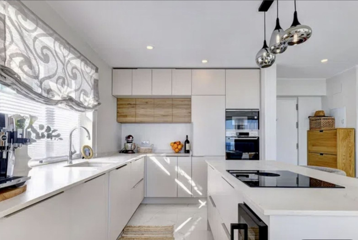 Exit to the private garden and pool area. The villa features a beautiful pool area with ample space for sunbathing, plus a barbecue area ideal for entertaining family and friends. For even more spectacular views, head up to the rooftop solarium where you can relax with a refreshing drink while enjoying the beauty of the Mediterranean, a wonderful place to create unforgettable memories.