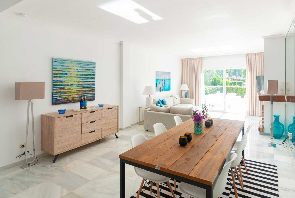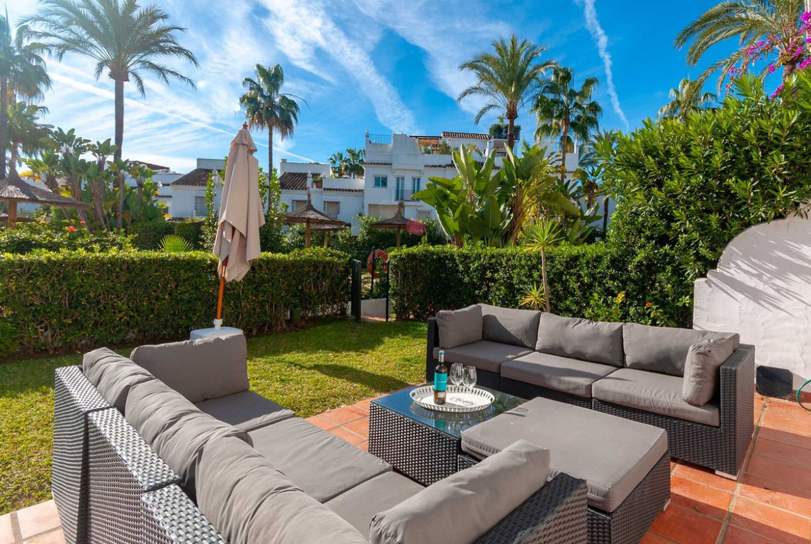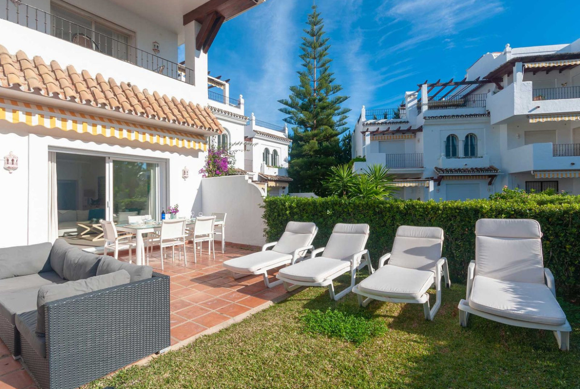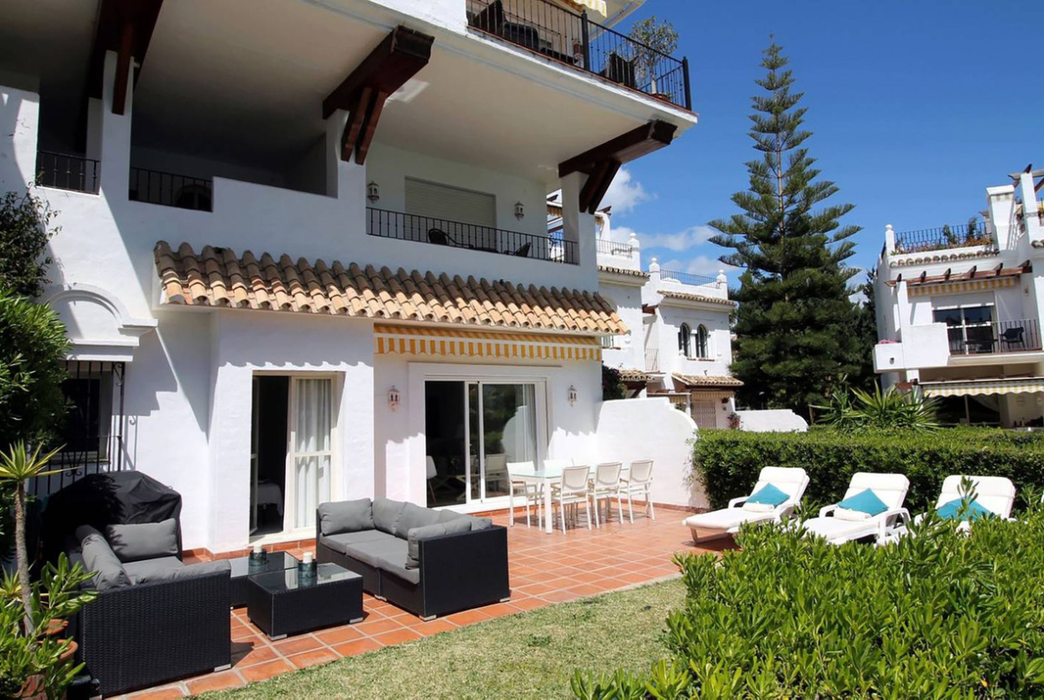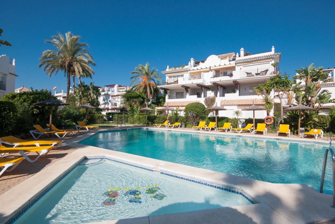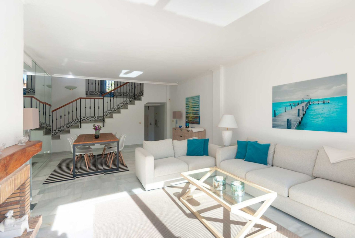 A rare opportunity to acquire a ground floor duplex apartment of this character in the popular gated development of Castiglione. Situated only a stone throw away from the Paseo Maritimo of San Pedro with all its Restaurants and beach makes this a desired property. The apartment is situated in a south orientation with a small private garden behind the beautifully kept communal pool. The large kitchen was recently fitted with a sleek modern design. When you get to the living room you are greeted with a very light and friendly room with terrace doors leading onto the terrace and small private garden. On this floor you have the master bedroom ensuite. On the top floor, there are 2 guest rooms sharing a bathroom. The apartment is a perfect holiday home with a very successful rental record. A true gem in a privileged area that has to be seen to be fully appreciated.