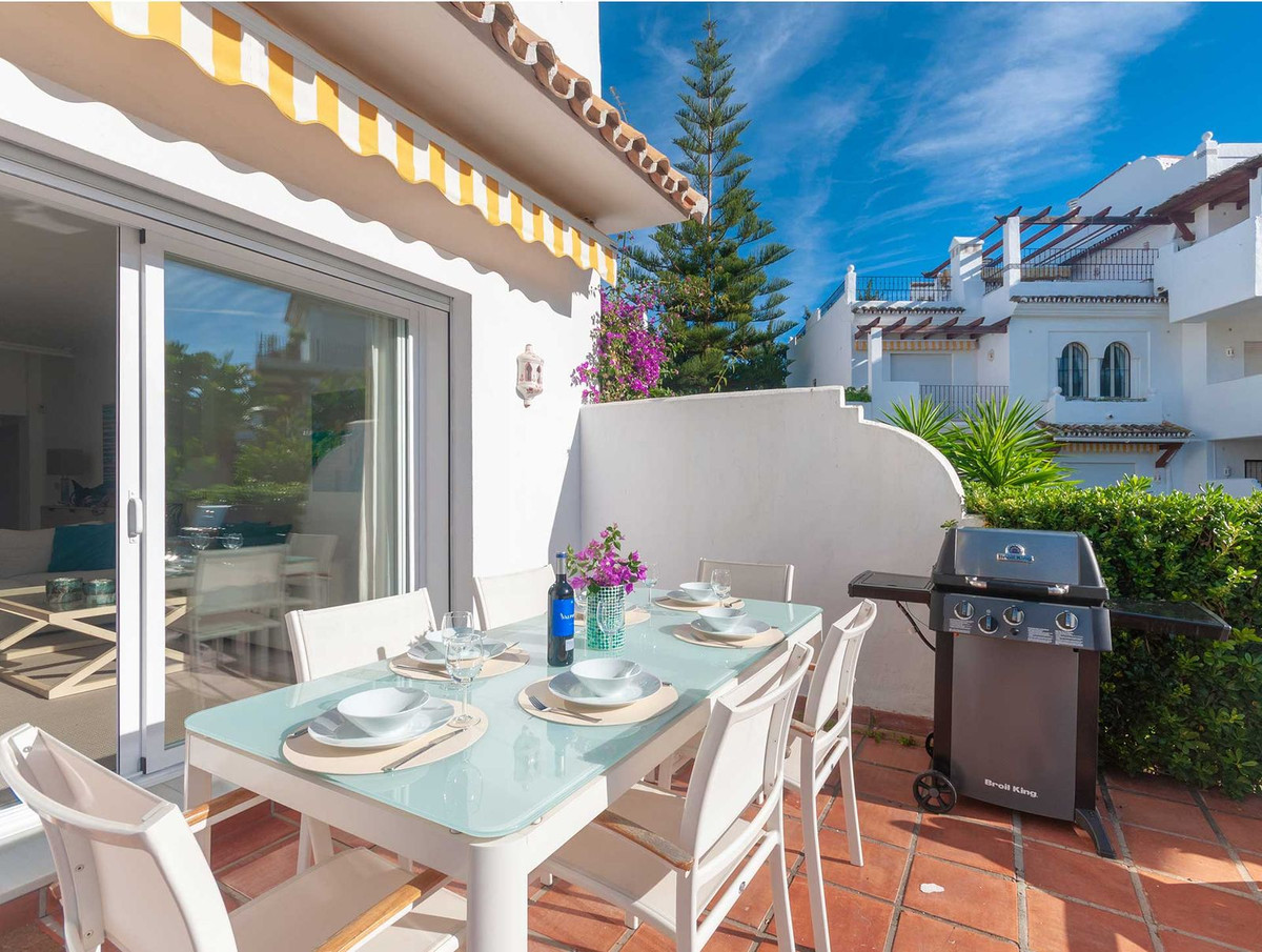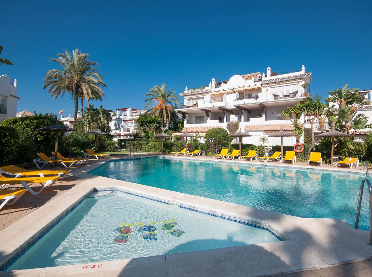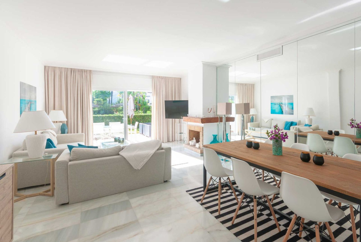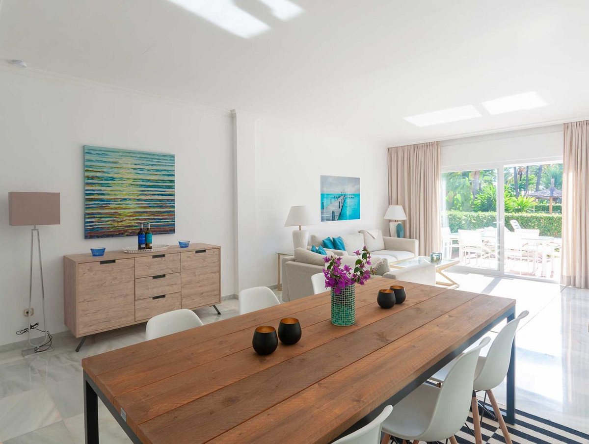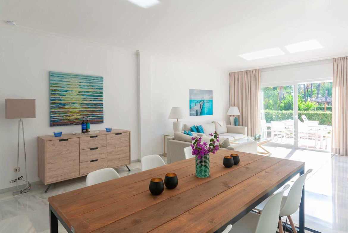 A rare opportunity to acquire a ground floor duplex apartment of this character in the popular gated development of Castiglione. Situated only a stone throw away from the Paseo Maritimo of San Pedro with all its Restaurants and beach makes this a desired property. The apartment is situated in a south orientation with a small private garden behind the beautifully kept communal pool. The large kitchen was recently fitted with a sleek modern design. When you get to the living room you are greeted with a very light and friendly room with terrace doors leading onto the terrace and small private garden. On this floor you have the master bedroom ensuite. On the top floor, there are 2 guest rooms sharing a bathroom. The apartment is a perfect holiday home with a very successful rental record. A true gem in a privileged area that has to be seen to be fully appreciated.