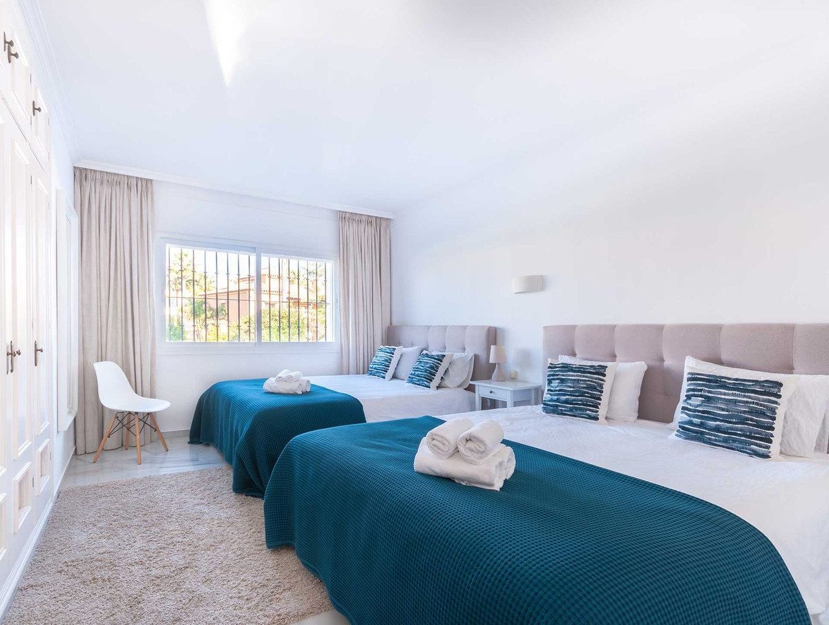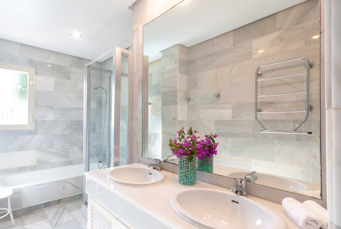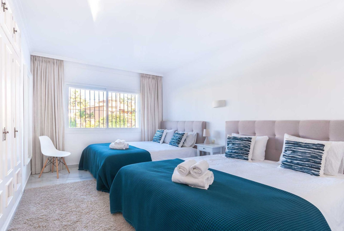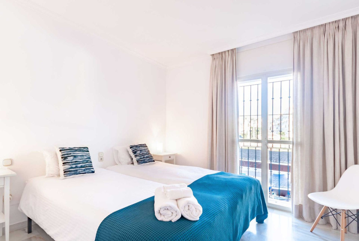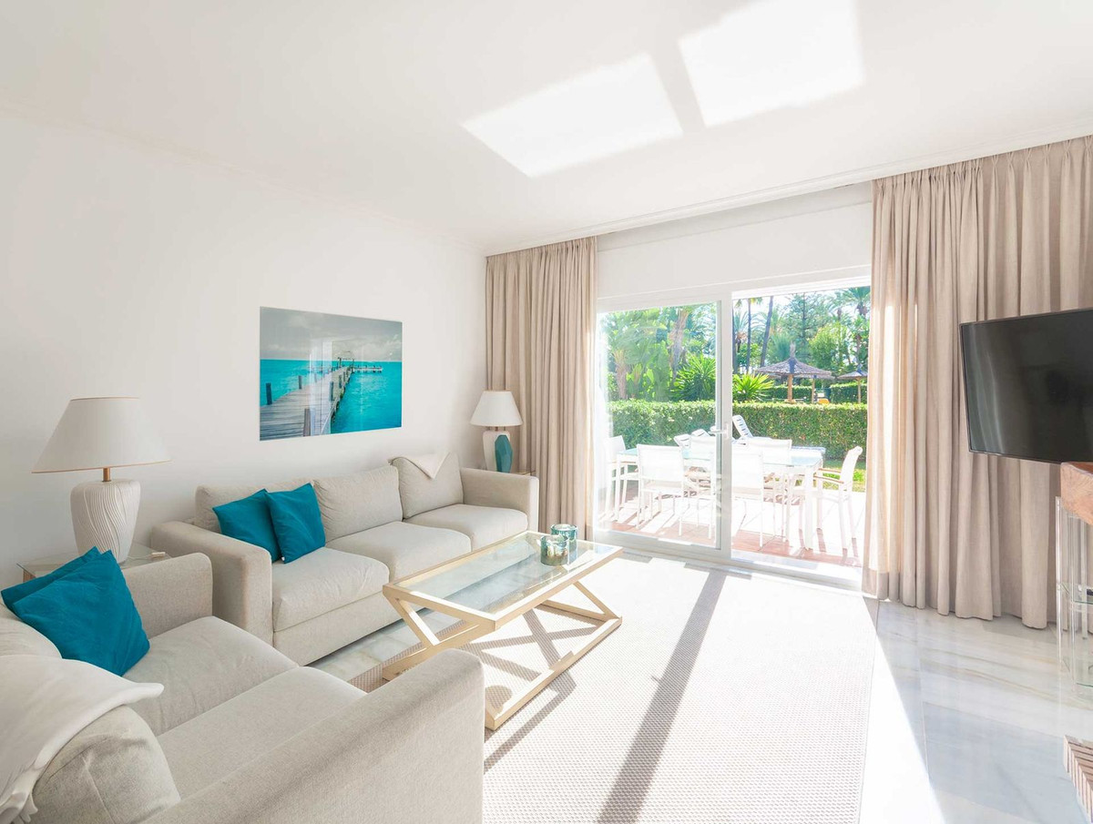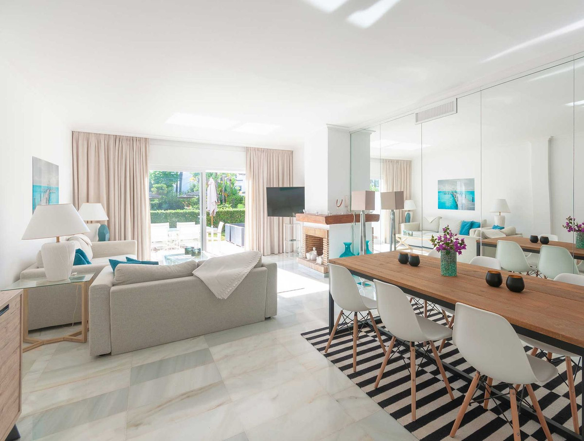 A rare opportunity to acquire a ground floor duplex apartment of this character in the popular gated development of Castiglione. Situated only a stone throw away from the Paseo Maritimo of San Pedro with all its Restaurants and beach makes this a desired property. The apartment is situated in a south orientation with a small private garden behind the beautifully kept communal pool. The large kitchen was recently fitted with a sleek modern design. When you get to the living room you are greeted with a very light and friendly room with terrace doors leading onto the terrace and small private garden. On this floor you have the master bedroom ensuite. On the top floor, there are 2 guest rooms sharing a bathroom. The apartment is a perfect holiday home with a very successful rental record. A true gem in a privileged area that has to be seen to be fully appreciated.