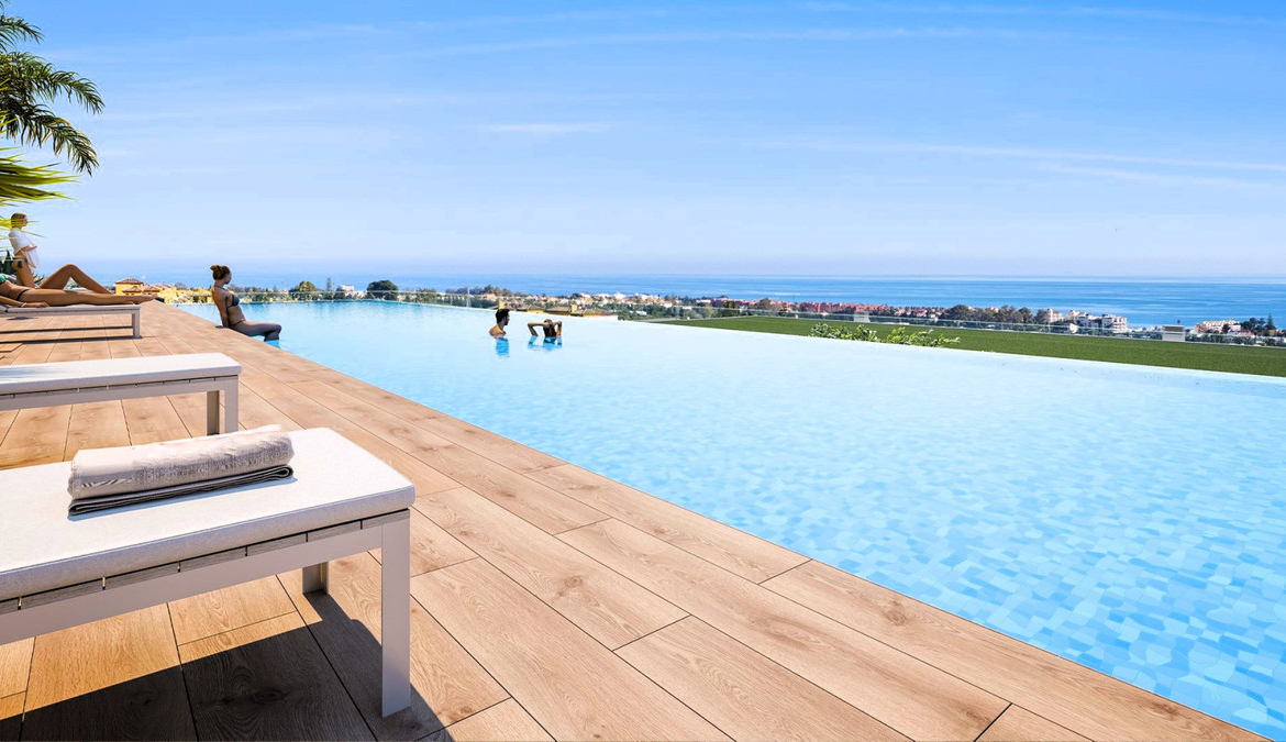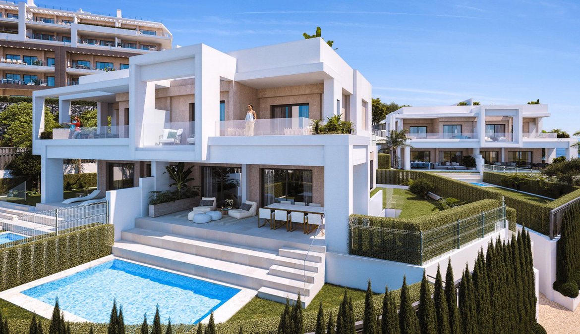 Luxury semi-detached villas, in Selwo-New golden Mile, within few minutes to Puerto Banús and Estepona, in a gated exclusive community full of amenities with gym, spa, coworking, paddle, jacuzzis, summer pool for adults and children, infinity heated pool with panoramic sea views, children playgrounds and security entrance.