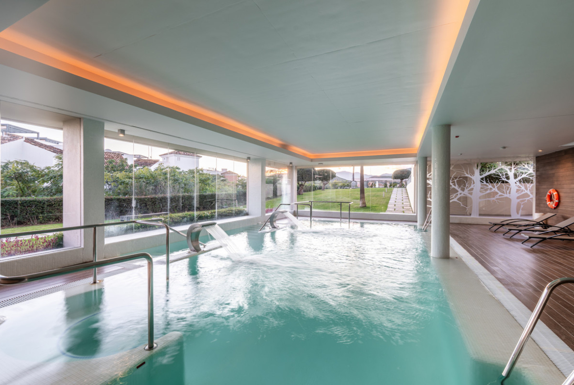 Set within a tranquil and serene environment, this luxurious property benefits from top quality communal facilities, including a huge outdoor pool, a separate pool in a quiet corner of the gardens that is exclusively for adults, a fully-equipped gym, and a spa with a sauna, steam room, and an additional large indoor pool.