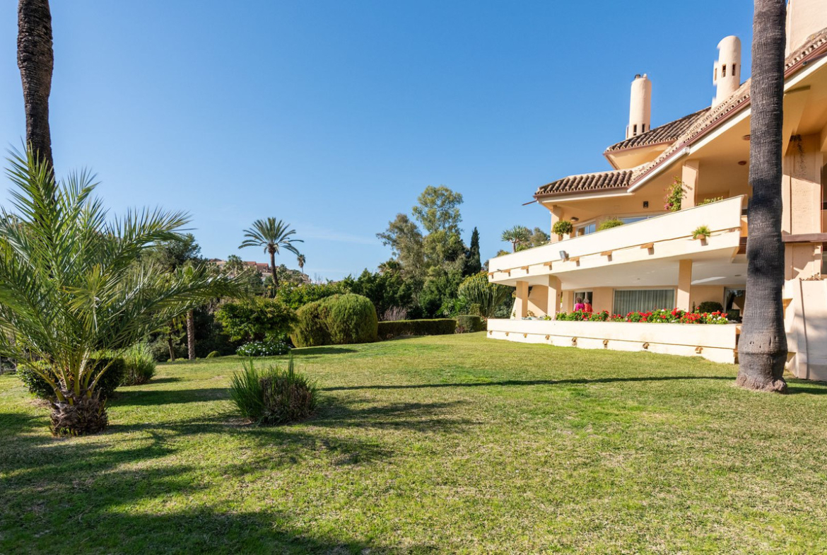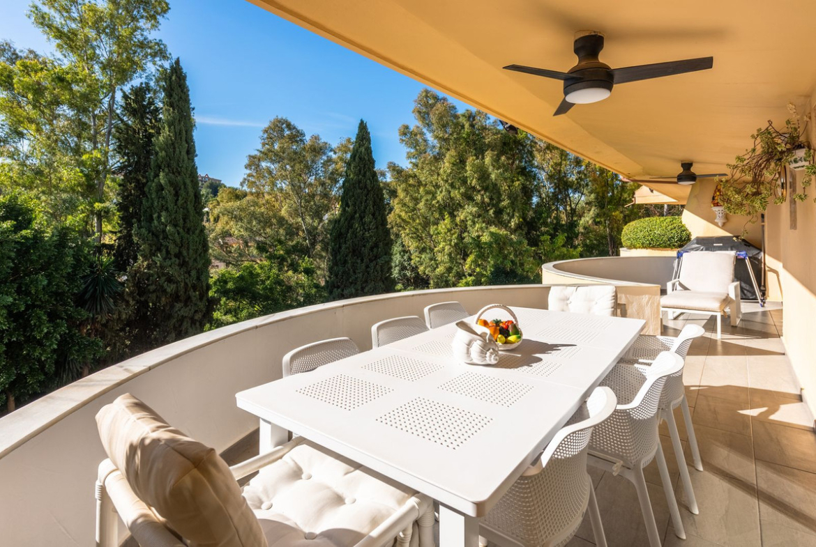 This exquisite 3-bedroom, 3-bathroom luxury apartment is located in a small, exclusive complex of only 18 apartments, offering a serene and private living experience. Nestled in the heart of the prestigious Golf Valley, this gated and secure residence provides peace of mind with underground parking that includes three private spaces. The apartment boasts breathtaking panoramic views over the lush Aloha Golf Course and Las Brisas Golf Course, creating a tranquil backdrop for everyday life. With two sparkling pools, one of which is heated, residents can enjoy year-round relaxation in an idyllic setting.