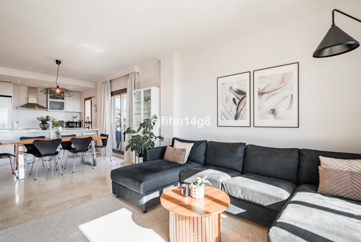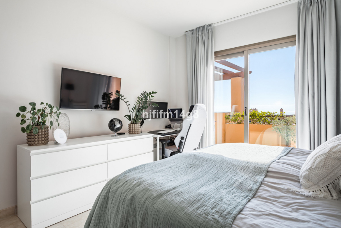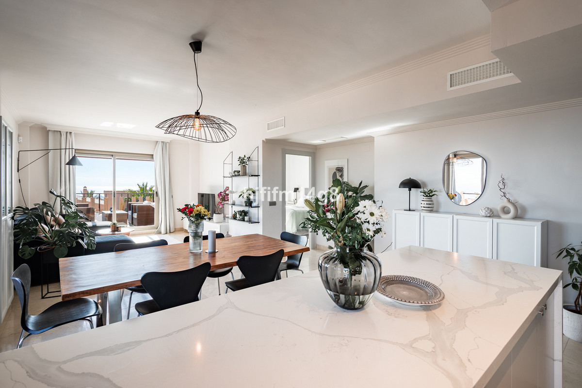 This luxurious single-level penthouse offers stunning panoramic views of the sea and mountains. The property features an entrance hall leading to a spacious living and dining area, which opens onto two terraces: one facing southeast with views of La Concha mountain, the Atalaya Golf Course, and the Mediterranean Sea; the other facing south/southwest, showcasing sweeping vistas of the sea, Gibraltar, and the North African coastline.