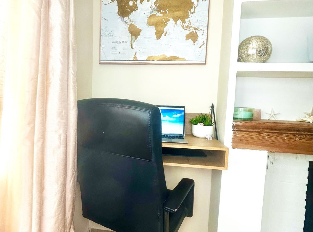 The open plan ground floor comprises a bright living room, dining room and kitchen with an office corner, ideal for working from home, two wood burning fireplaces and a guest bathroom.