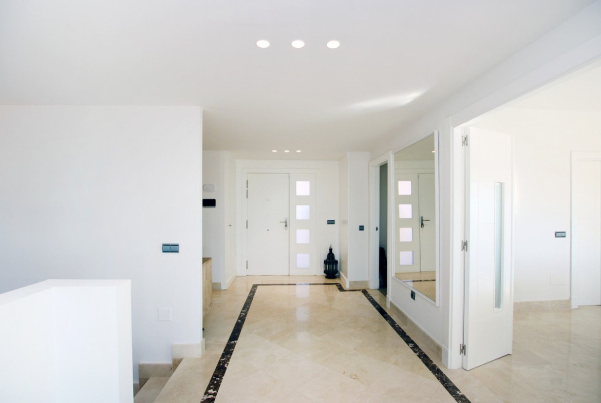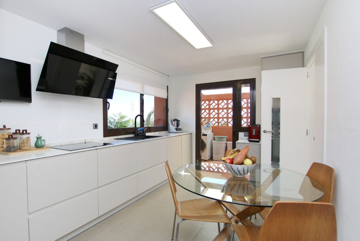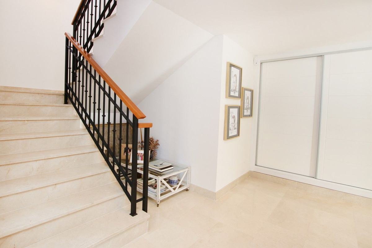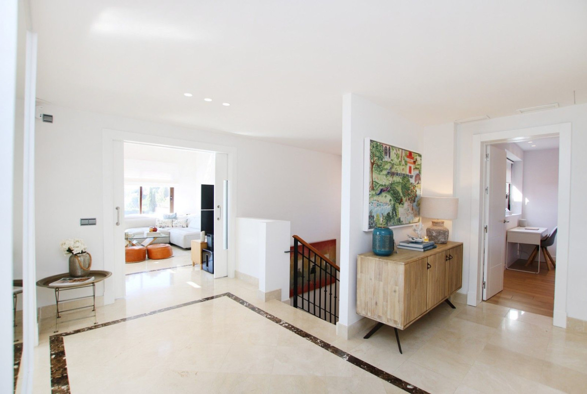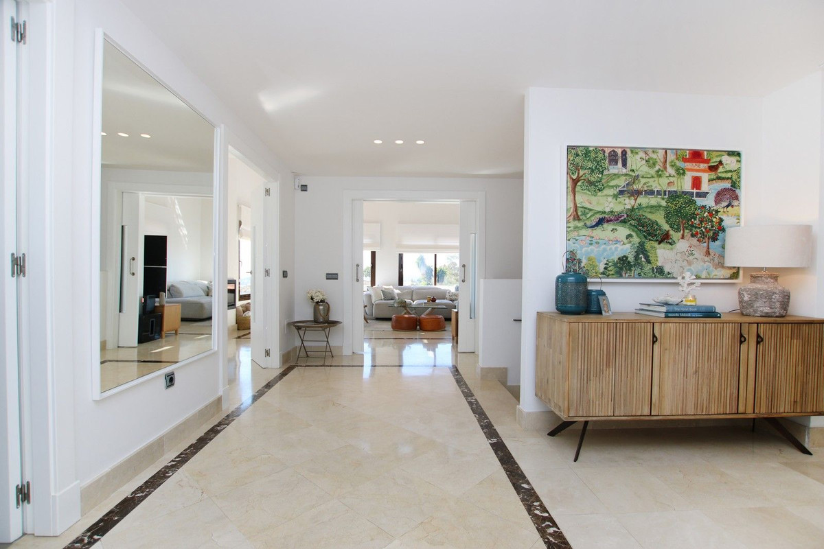 Step through the front door and into the welcoming foyer, where the essence of Villa El Retamar begins to unfold. To the right, a guest toilet and bedroom offer privacy and comfort to visitors. To the left, a high-level kitchen, equipped with modern appliances, connects seamlessly with a practical laundry room and the elegant formal dining room.