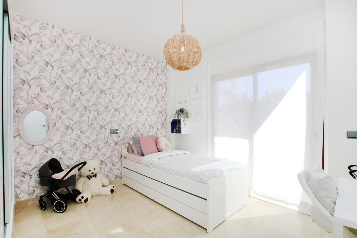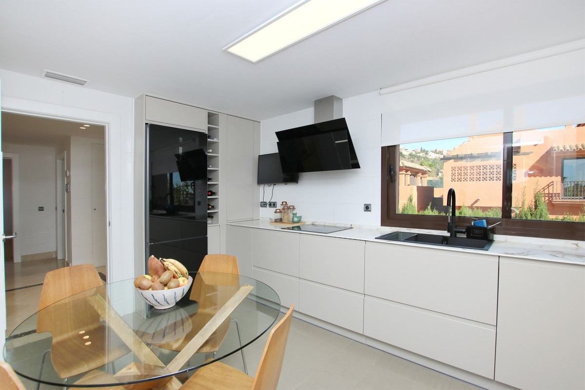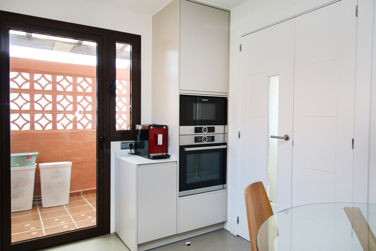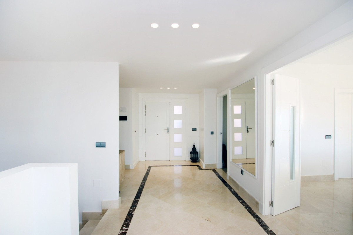 Step through the front door and into the welcoming foyer, where the essence of Villa El Retamar begins to unfold. To the right, a guest toilet and bedroom offer privacy and comfort to visitors. To the left, a high-level kitchen, equipped with modern appliances, connects seamlessly with a practical laundry room and the elegant formal dining room.