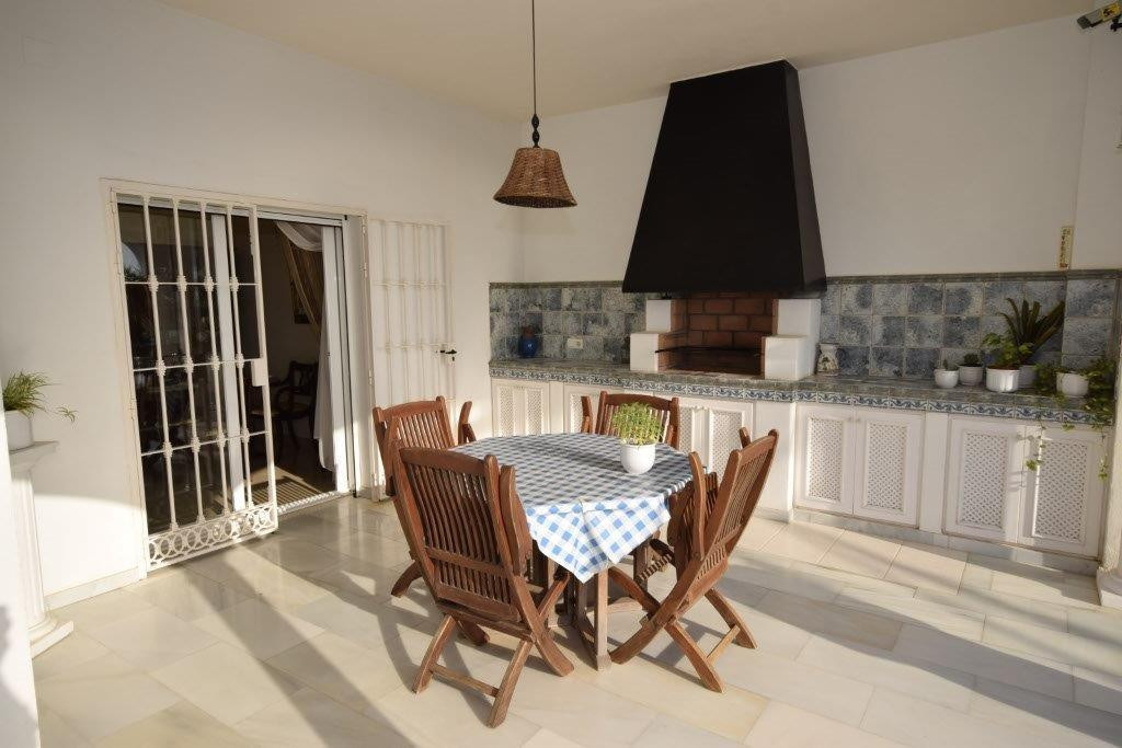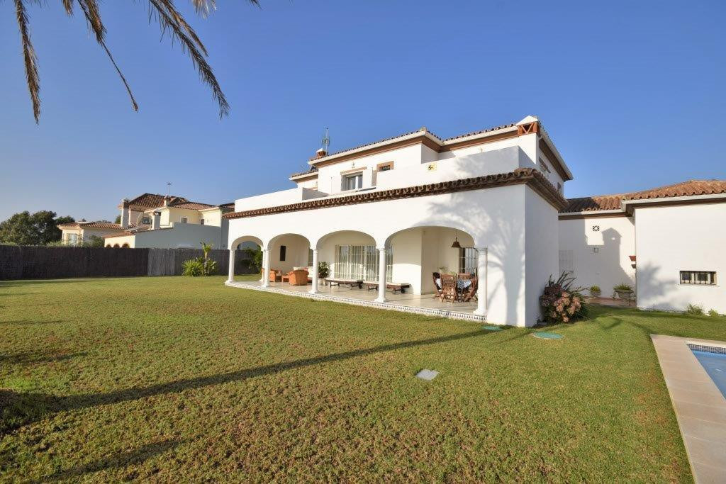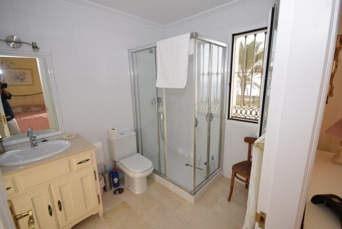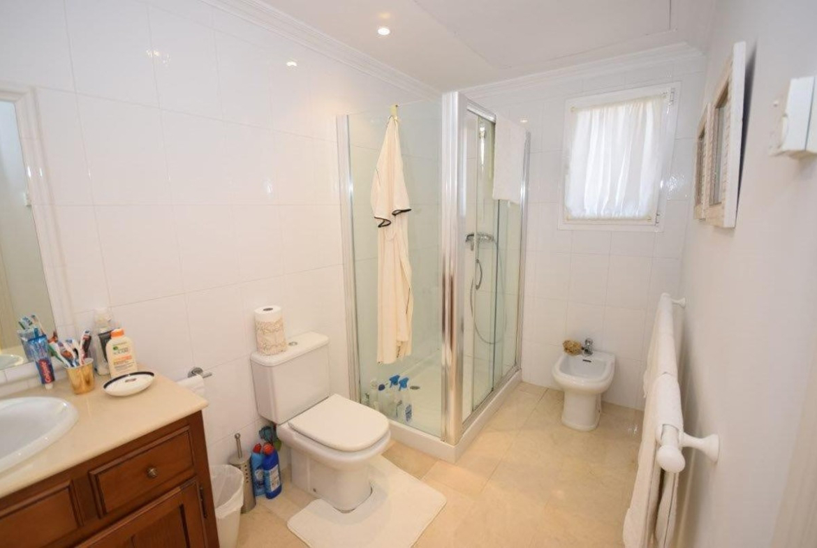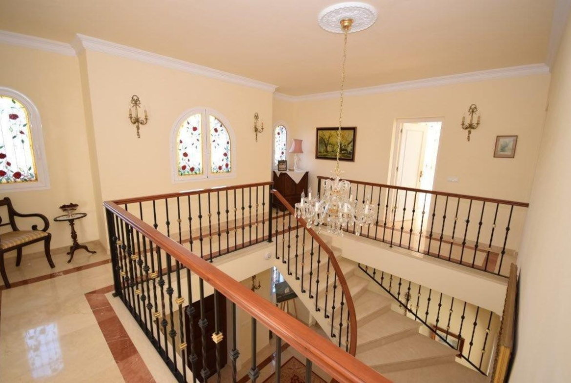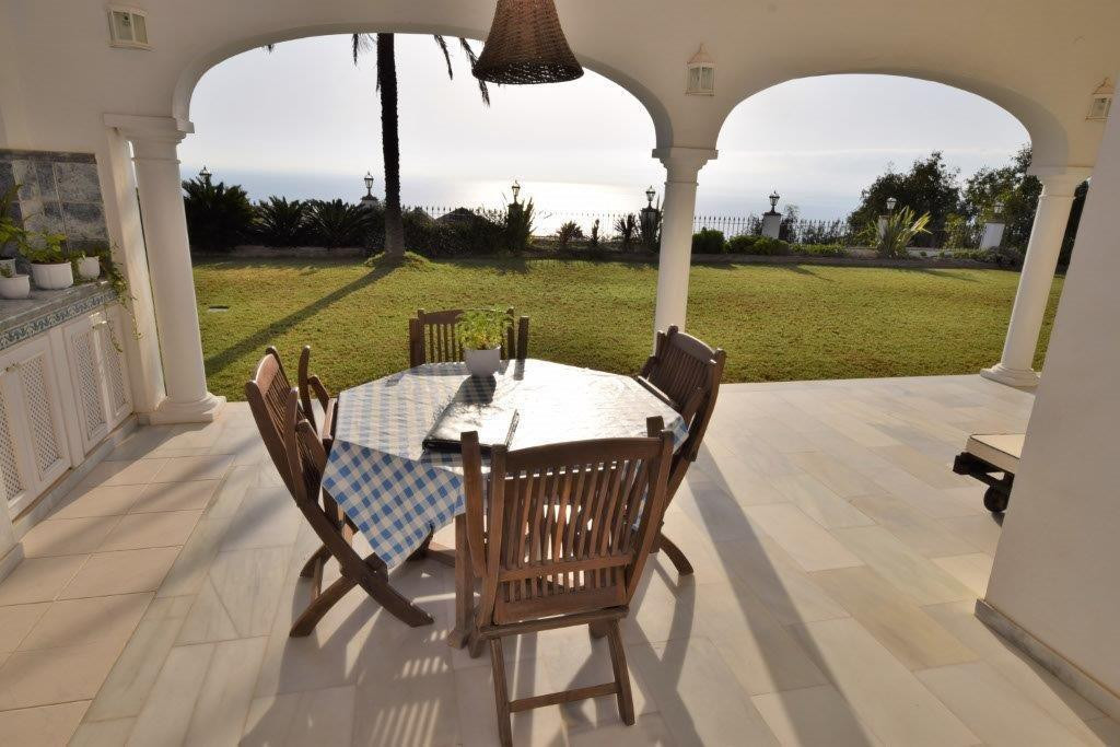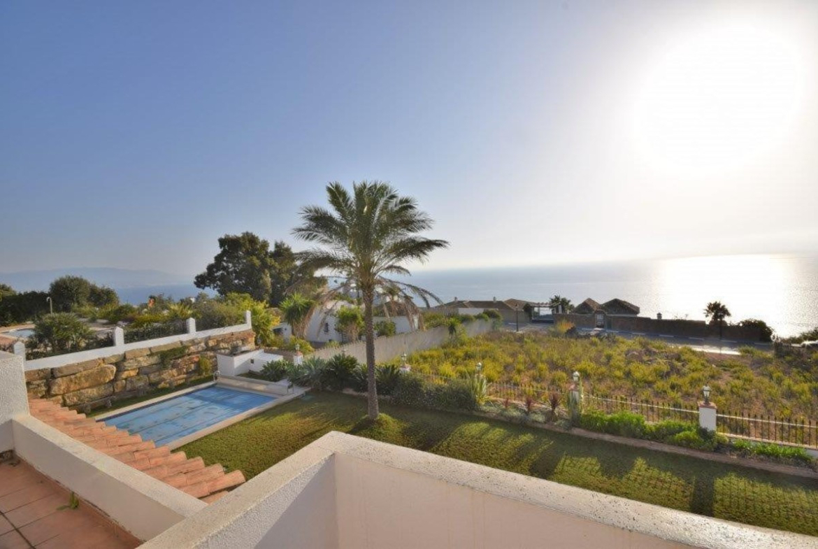 Fantastic south facing villa with amazing sea views in La Paloma, Manilva. The house consists of 4 bedrooms and 4 bathrooms. On the first floor there are 3 bedrooms with bathrooms en suite. On the entrance level there is the kitchen and living- dining area and another bedroom with bathroom. From all the rooms you have access to the garden or the terrace with excellent views. There is a heated pool. The garage fits 2 cars. The house has a big basment. A nice family home.