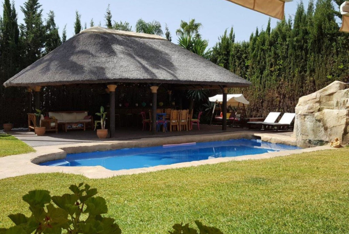 Designed for comfortable family living it boasts a large lawned area with thatched exterior pergola with lounge, bar and BBQ beside a designer pool with waterfall, plus a back garden furnished with a chill out and children outdoor games area.