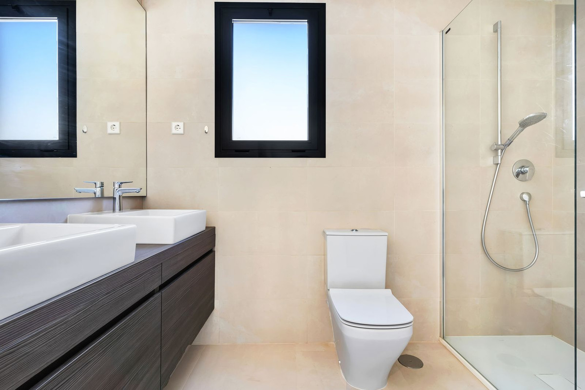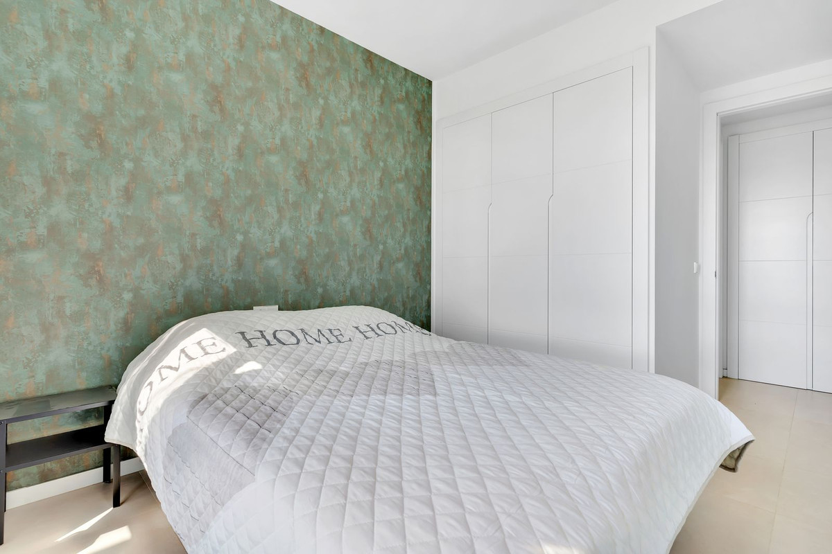 The bright living room leads to a large terrace of 40m2, where you can enjoy your morning coffee or a glass of wine at sunset, while looking out over the shimmering waves of the sea. The open kitchen, equipped with all comforts such as fridge, freezer, induction and oven, makes it perfect for daily meals or receiving guests.