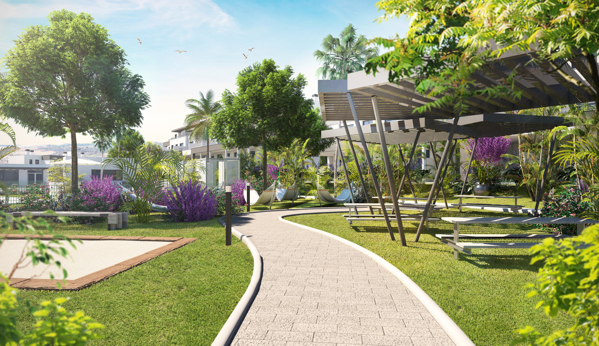 The project integrates excellent common areas composed of two swimming pools for adults and children, gym and social club,coworking area, children's playground, petanque court, and jogging space, surrounded by well-tended gardens that will make health, leisure and well-being their new way of life.
