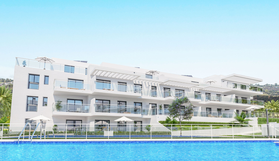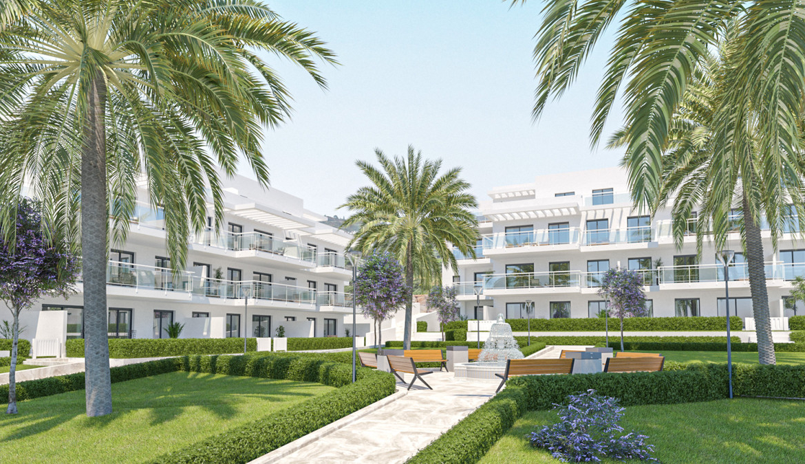 Modern and bright apartments situated in the centre of each building with open views to the community gardens and the Mijas mountains. The lay-out of our 2 bedroom apartments is very attractive as from all rooms you have direct access to a spacious 20+ m2 terrace. Ground floor apartments also benefit from a private garden with access into the communal gardens.