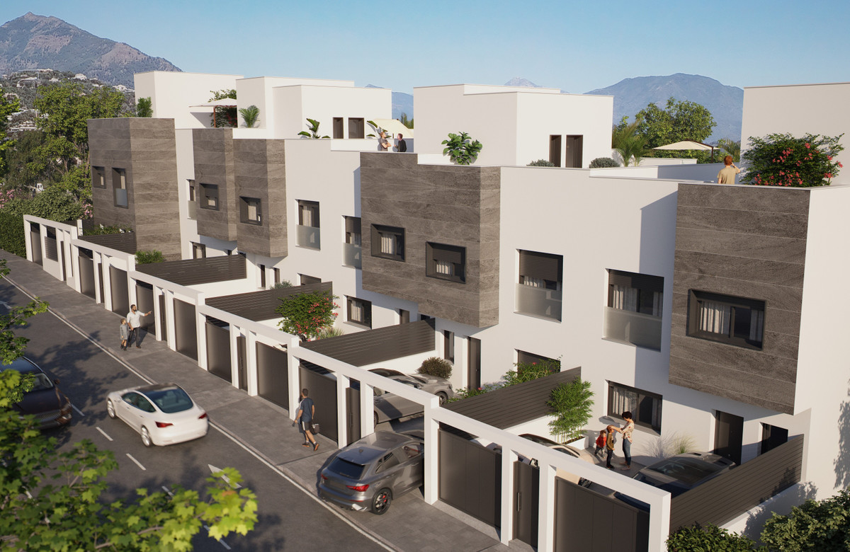 The semi-detached house development will have a total of 6 3 or 4 bedroom homes on the first floor, with large outdoor terraces, individual swimming pool and two parking spaces on the ground floor, solarium and sauna on the roof.