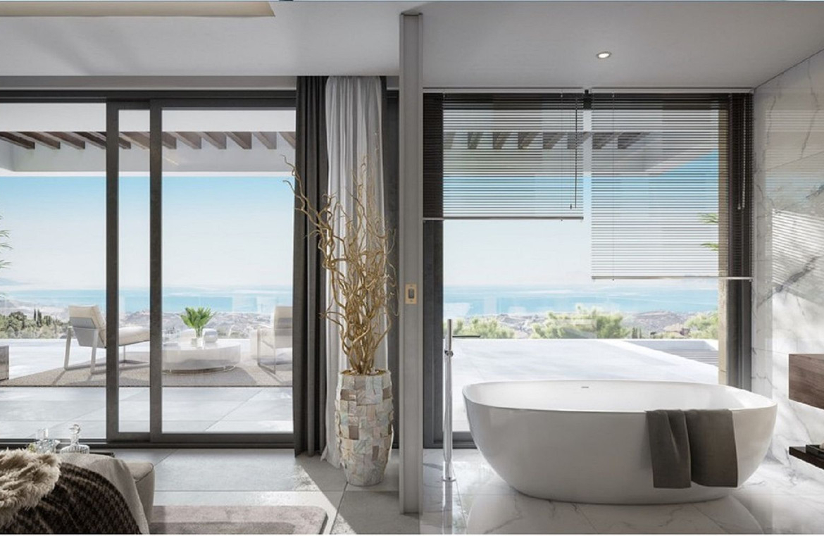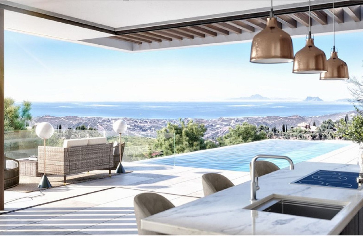 The views are of the sea and mountains.