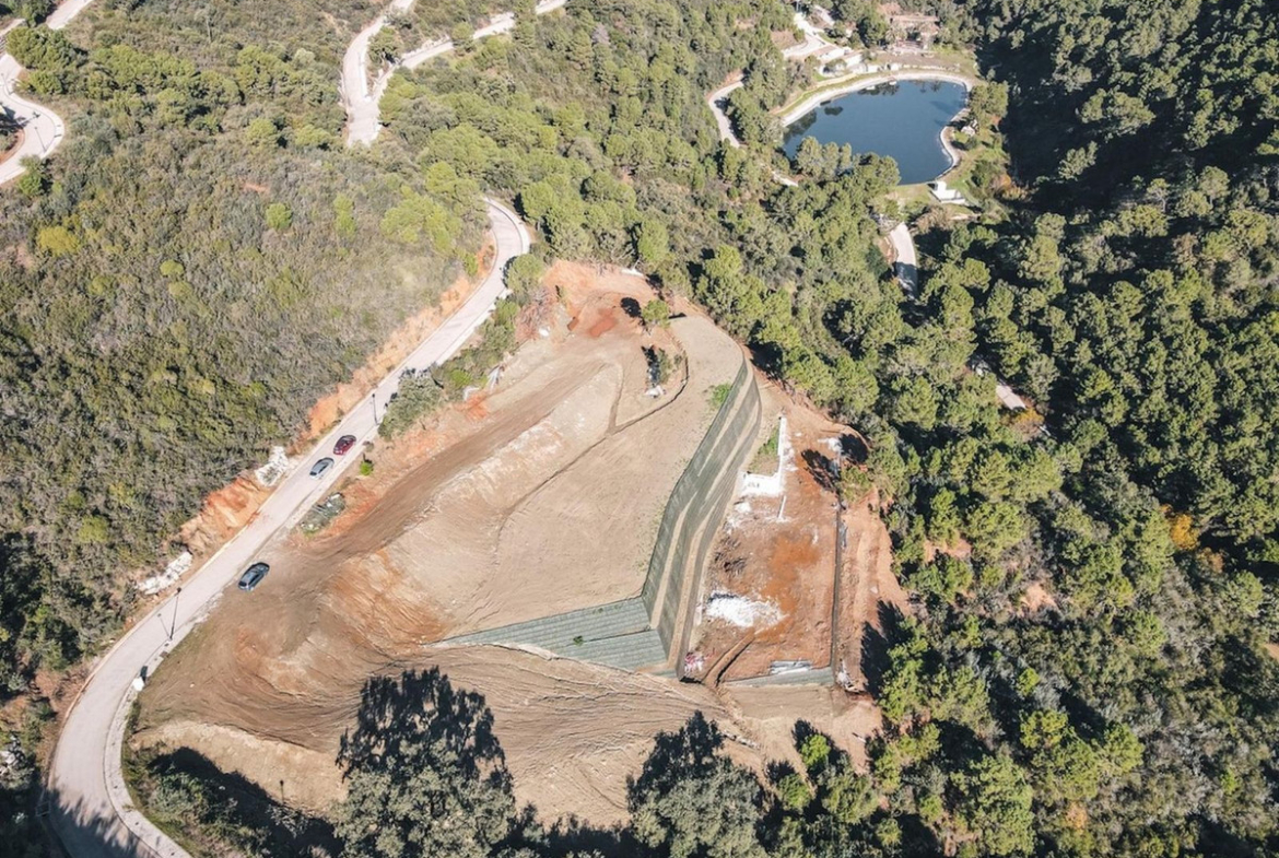 It is located in a landscape surrounded by Mediterranean vegetation, pines, oaks and views of a lake.