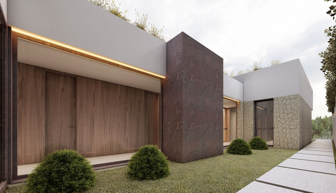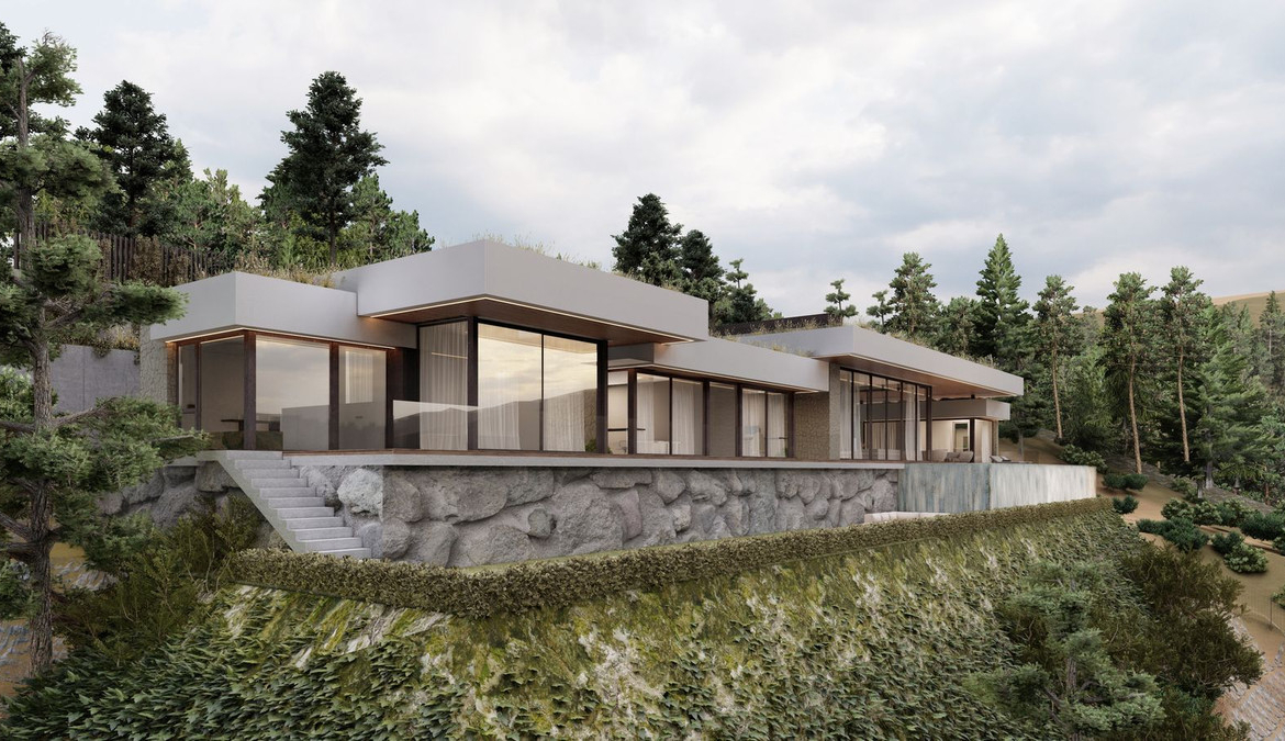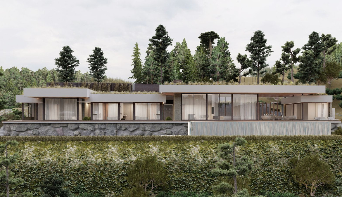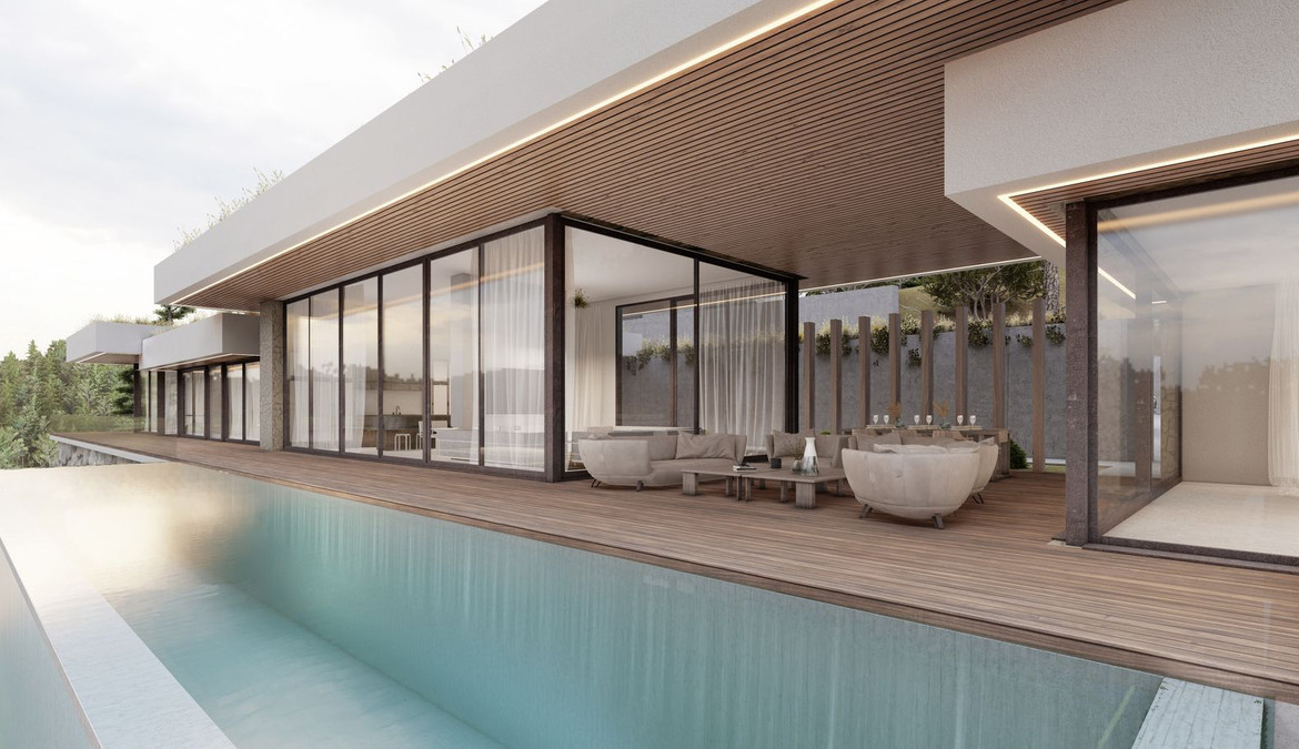 The project is for an ultra modern villa where the each detail was thinking for a contemporary life style. Huge windows up to ceilings will allow enjoying these stunning views from every edge of the property. The villa will distribute into one level which is perfect as a family home and will consist of a spacious entrance leading to a double height living area with an open plan kitchen and the direct access to the outdoor chill out area with covered and uncovered spaces and a beautiful swimming pool, 4 bedrooms, 3 bathrooms, a master bedroom is en-suite with a separate dressing area. All bedrooms offers spectacular sea views and have the access to the garden. Other features are: a possibility to set up a modern gym, a sauna or an entertainment room instead of 4th bedroom, a garage for 2 cars.
