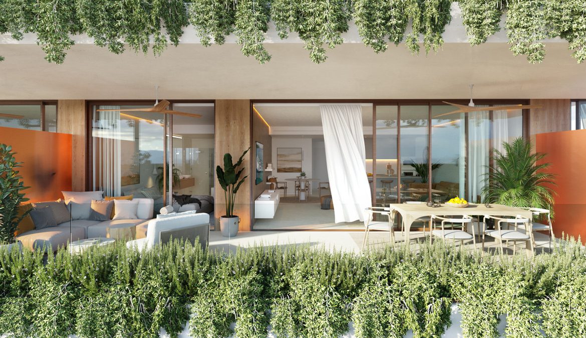 This development located just 3 minutes walking from Sport Club heading west. The plot has an area of 74,703 m2 with 224 homes. The modules will be made up of 3 floors, ground floor or garden villas, first floor and attic. It will have more than 20,000 m2 of landscaped green areas with native plants.