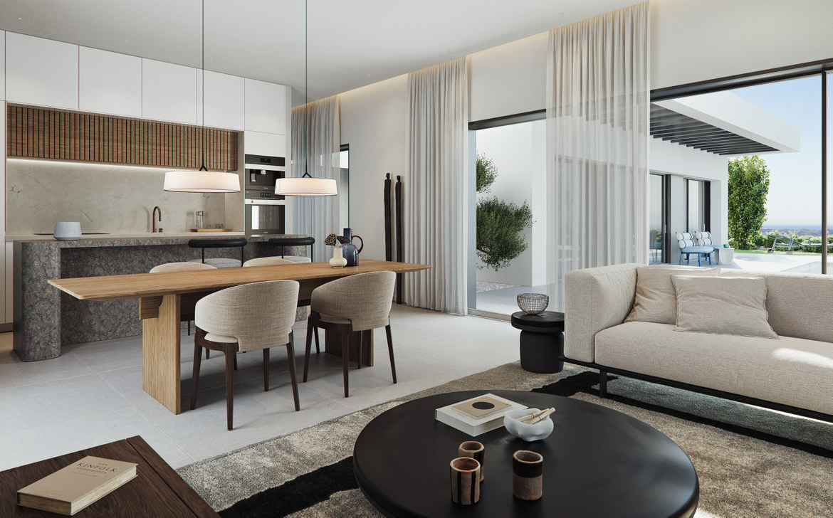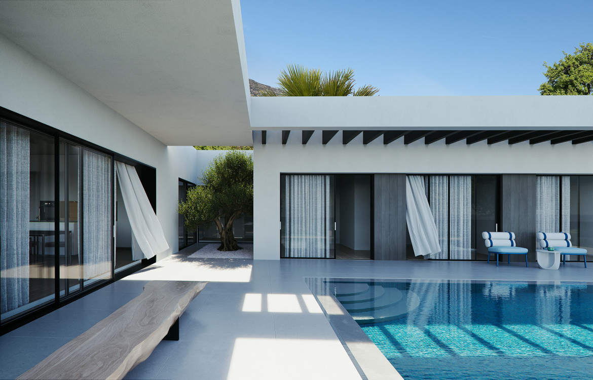 Villa Optima is an energy-saving house, boasting single-level architecture, top-tier materials, and clever spatial utilization. Available in three sizes with customizable options, each villa features four bedrooms, three and a half bathrooms, and expansive communal areas complemented by a private pool.
